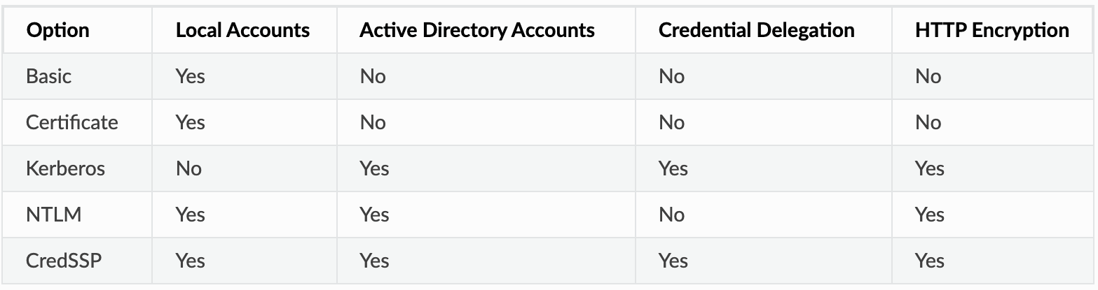 PS > winrm set winrm/config/service/Auth '@{Basic="false"}'