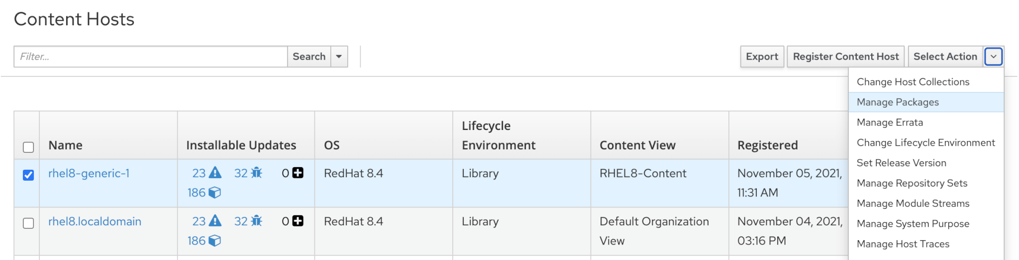 Read Red Hat Satellite – Managing Hosts official documentation.