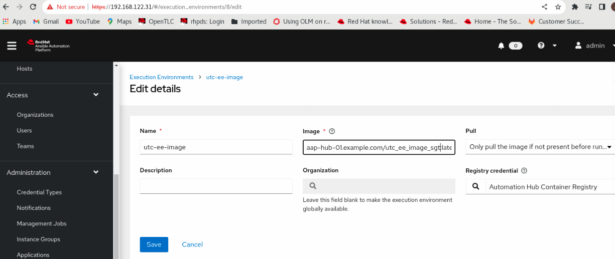 Configure the new execution image in AAP