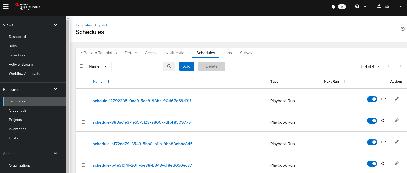- Patching Template: to install the patch. Once patching is over, the schedule will be deleted.