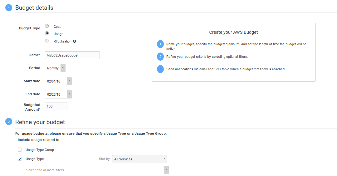 AWS has already provided a neat and easy billing dashboard to detail all of your resource usages and charges. You can setup billing alerts on your usage based on the budget you have setup.
