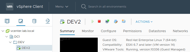 So below is my Terraform code for my existing VM named DEV2 and the path is /DC1/vm/DEV/DEV2 .