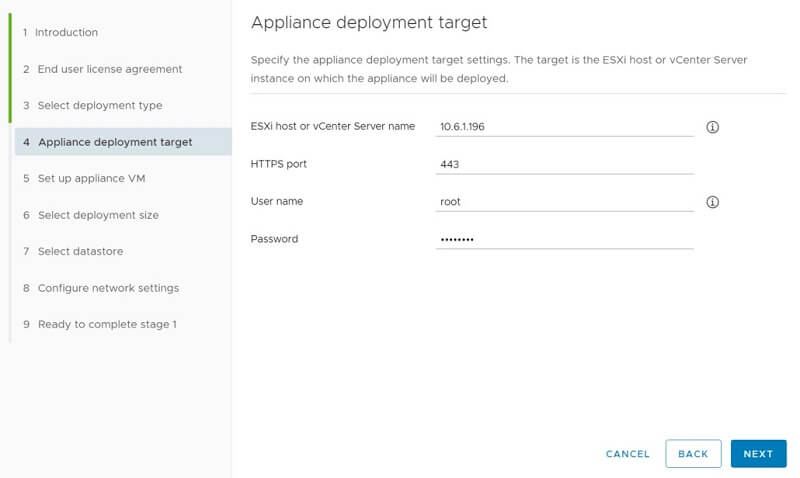 Choose credential for vCenter Server OS (Please note, this is not the vCenter login credential but the appliance operating system login)