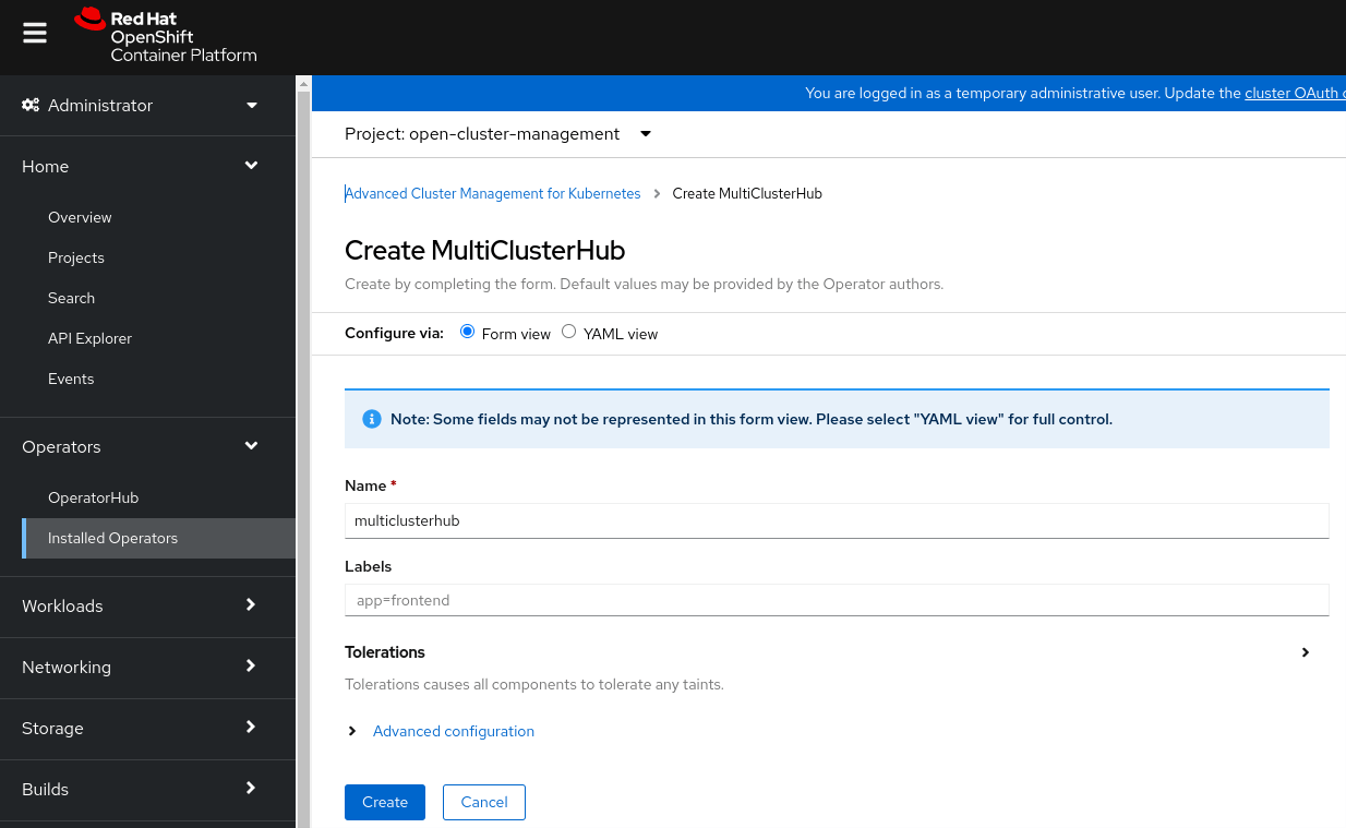 Click Create MulticlusterHub .