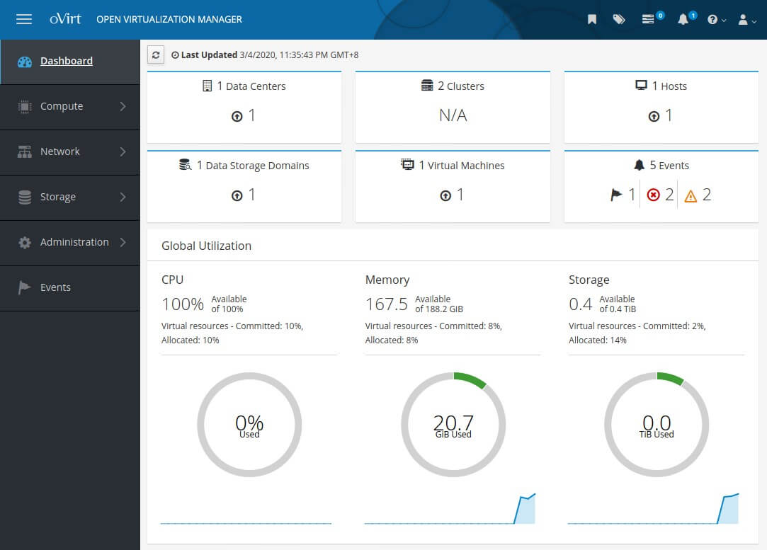 Note : This one is configured with very minimal setup and as a single All-In-One oVirt Cluster as a lab setup. You must consider using High performance storage and other dedicated network connections for production level clusters.