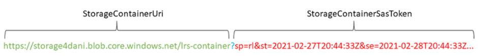 Before you use the SAS token to start LRS, you need to understand its structure. The URI of the generated SAS token consists of two parts separated with a question mark ( ? ), as shown in this example: