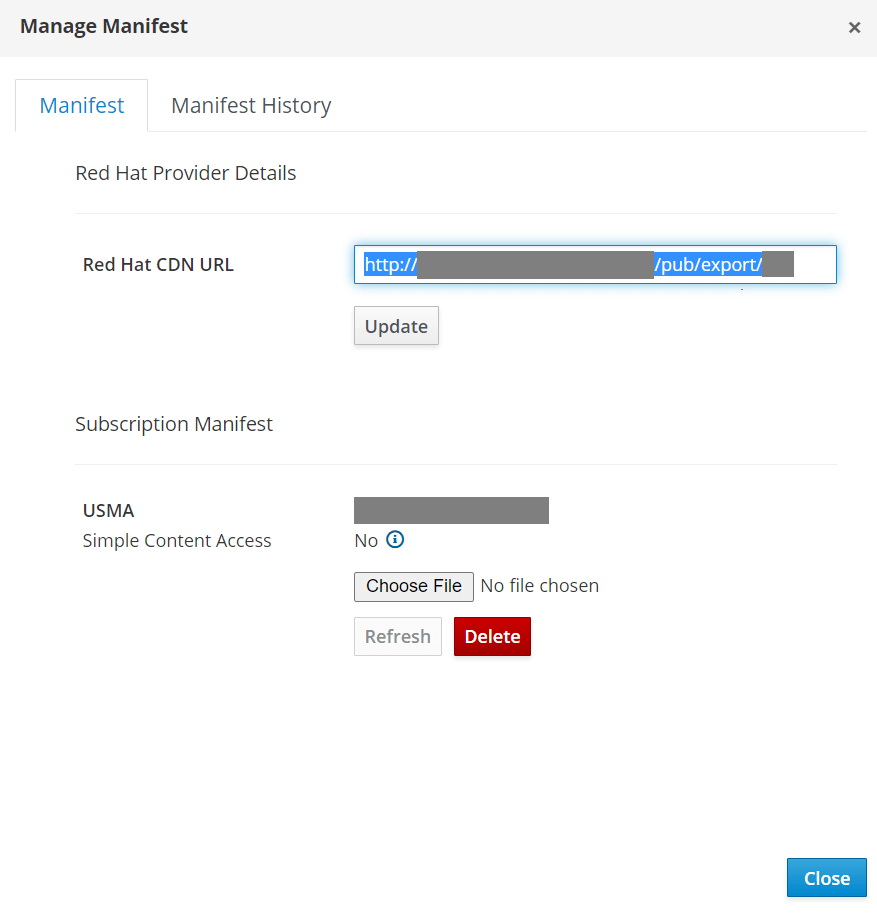 Open Satellite Server Web Console, Content -> Subscriptions -> Manage Manifest