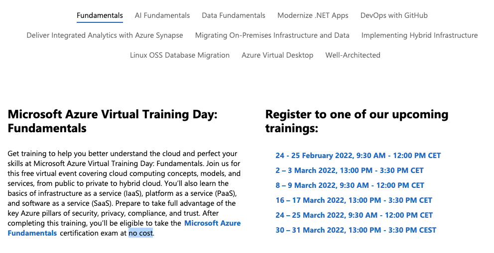 Microsoft is arranging Virtual Training Day for fundamentals, security and many other topics.